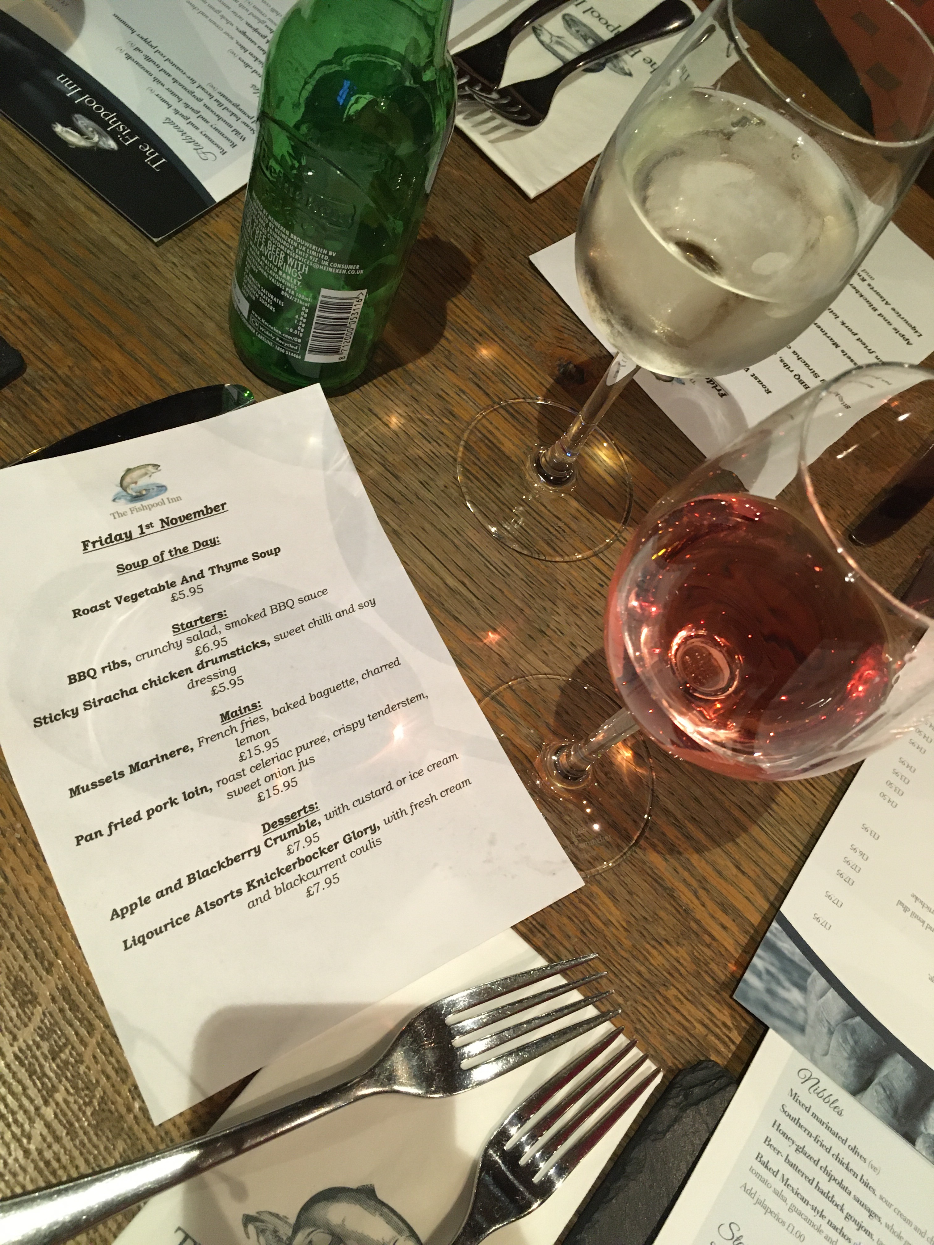 My husband had booked in advance as people with dogs eat in the bar area where there are less tables, with the main restaurant being on the other side of the building. We were seated quickly, close enough to a roaring fire to feel the heat, but not so close as to make us sweaty and uncomfortable. I love a burning fire when it’s cold outside. Makes me feel cosy.