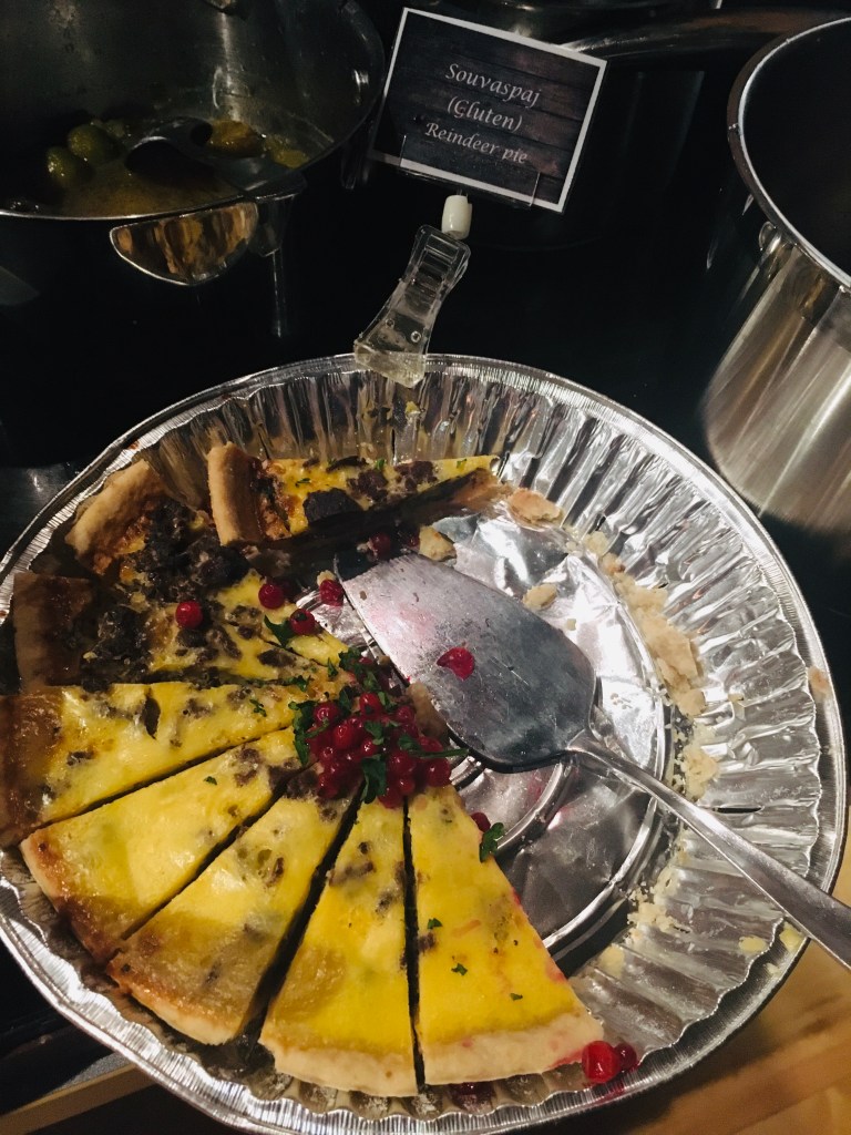 Not knowing what to expect, that evening we headed to the last night of the Christmas buffet. Surrounded by locals we piled our plates high with reindeer, wild boar, moose, pork, salads, dips, bread and sweets. Regarding reindeer we had reindeer pie, tongue, sausage and even heart. It was all delicious, though I doubt I would try tongue again in a hurry!