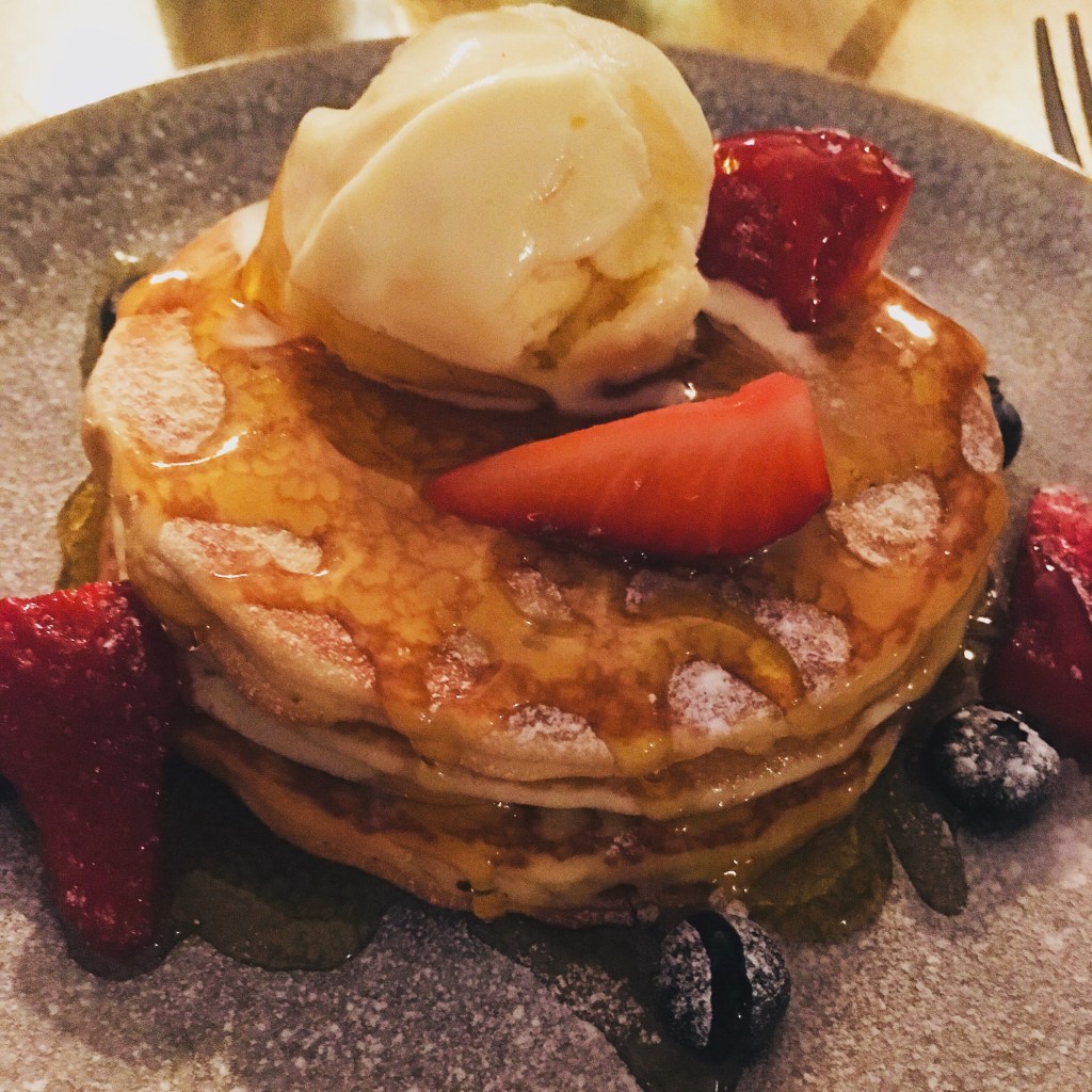 I however couldn’t resist the dessert menu and chose fluffy pancakes with berries, ice cream and syrup to end the meal with.
