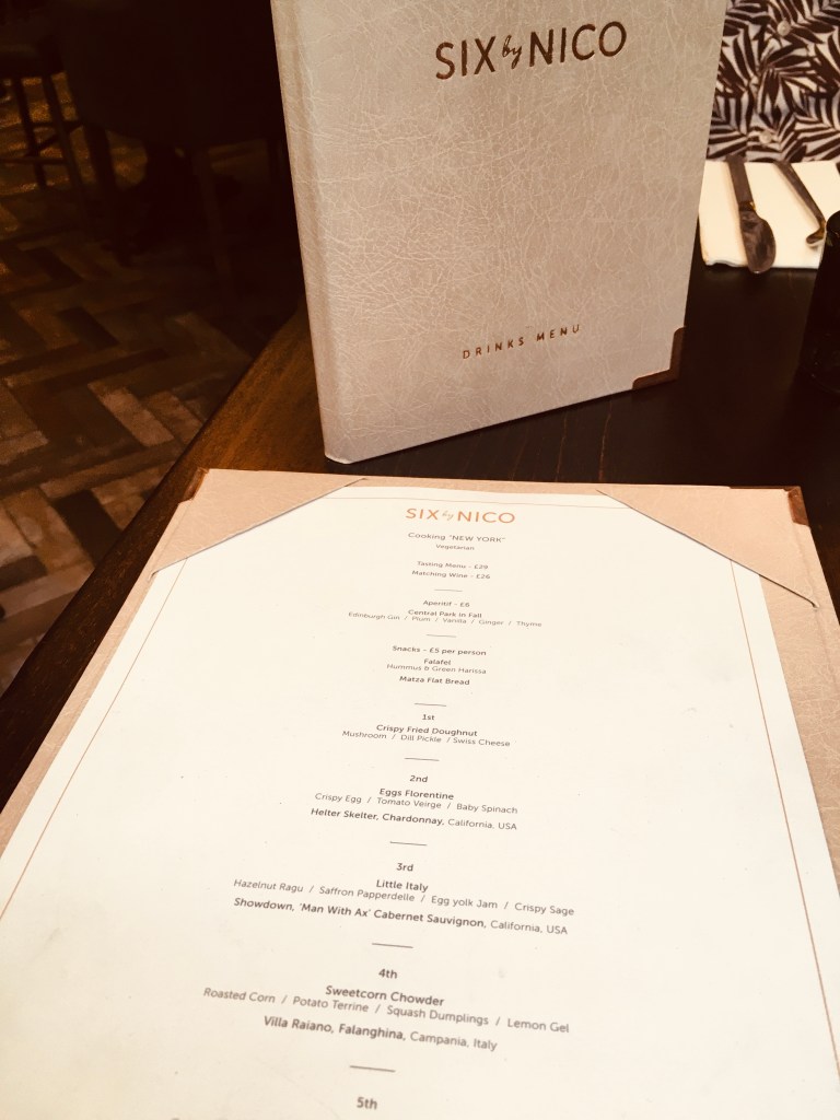 My husband booked us into this place for lunch. I was surprised then when he informed me that it was going to be a six course lunch on a Friday afternoon. It would appear this small chain of five restaurants picks a theme, creates a six course tasting menu based around it, sticks to that theme then for six weeks, when a new theme is announced and a whole new tasting menu along with it. I absolutely adore this concept and at only £29 per person it is such good value! We arrived at the Liverpool venue to find the ‘Cooking New York’ theme was in play. The menu was fascinating to to read and whilst my hubby chose the normal menu I went for the vegetarian option