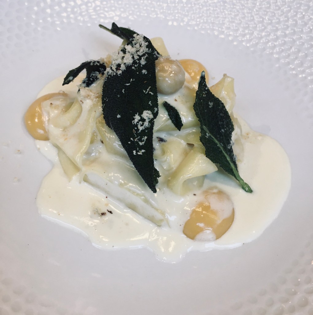 ‘Little Italy’ was next and I think this was my favourite course. Hazelnut ragu, saffron pappardelle, egg yolk jam and crispy sage. This was honestly the nicest, creamiest pasta I’ve ever eaten and it was absolutely beautiful. By now I was also getting rather full even though the dishes appeared small.