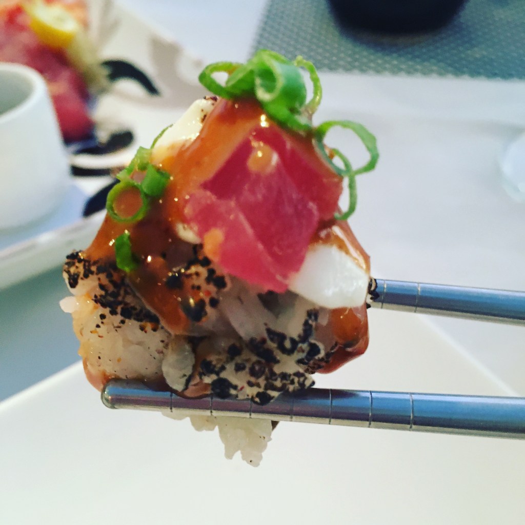 I enjoyed the ‘Songbird’ maki rolls. Tuna, avocado, crab, cream cheese and chives, togarashi powder (a spicy chilli seasoning) and chipotle mayo creation that was was honestly some of the freshest and tastiest sushi I have ever encountered. My husband had the ‘Wizard of Oz’ maki rolls. These were made up of salmon, tuna, hamachi (a yellowtail fish), avocado, cucumber, crab and wasabi mayo. We also shared a portion of tuna sashimi. Whilst still raving about our starters, the mains came. My husband ordered the seared yellowfin tuna and I yet again went for the prawn option. I had the pan fried shrimp with roasted garlic and potato mash with a spicy emulsion and vegetables. To be honest I can hardly remember the mains as I am still dreaming about the maki rolls haha.