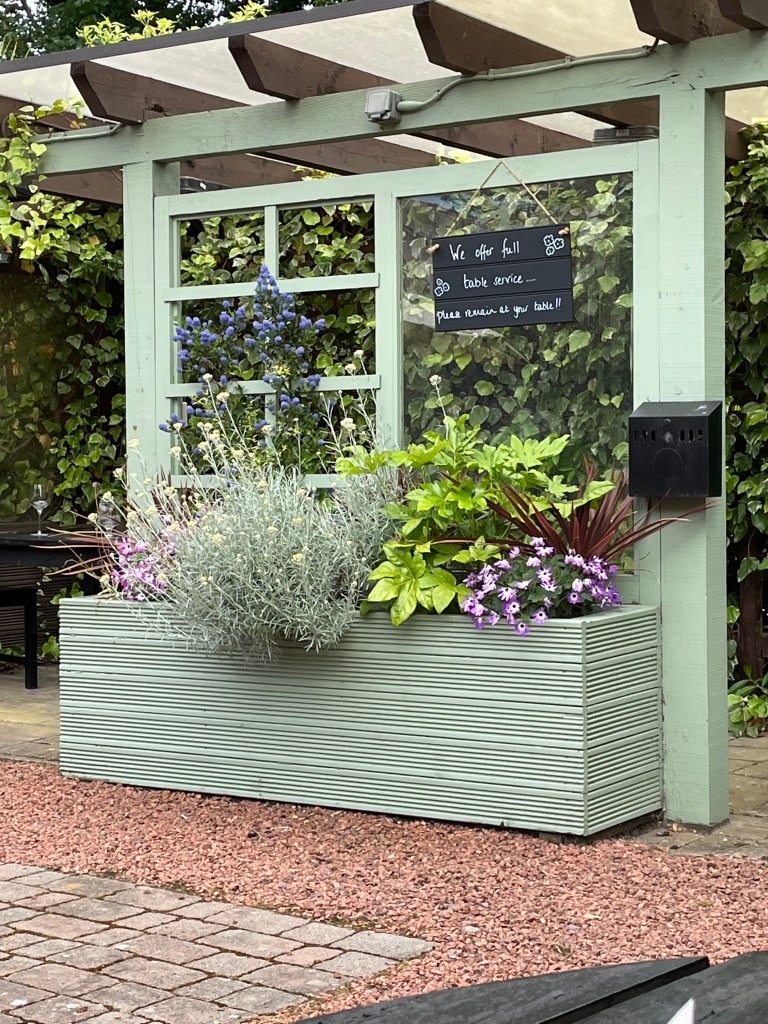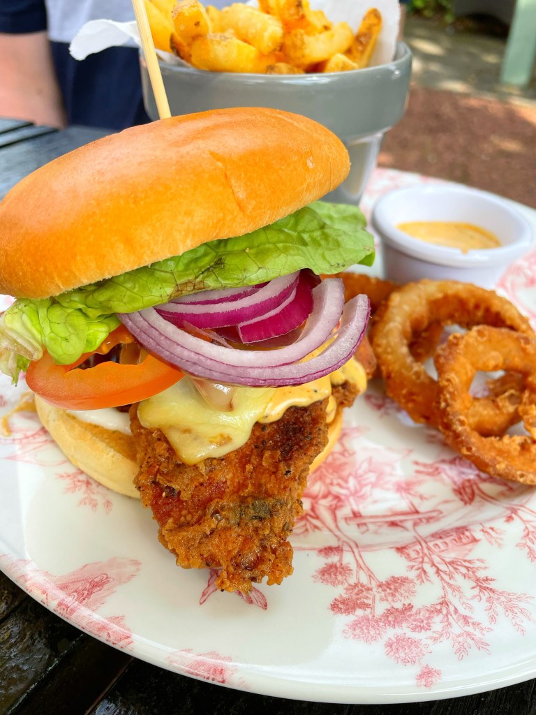 My sister ordered a fabulous looking chicken, leek and mushroom pie and my brother in law a Cajun chicken burger. We all enjoyed our meals as the dogs ran about getting their leads stuck and standing in their own water bowls and it was lovely. The staff were very attentive and enjoyed petting the dogs (apart from one bloke who shouted at them as we were leaving. What a grump!)