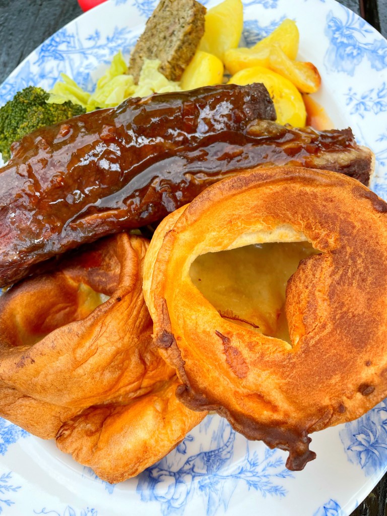 My husband ordered the 7 hour slow cooked rib of beef roast dinner, which came with a merlot and beef dripping sauce as well as all the usual veg. We both ordered an extra Yorkshire pudding, because who doesn’t want more Yorkies hey!