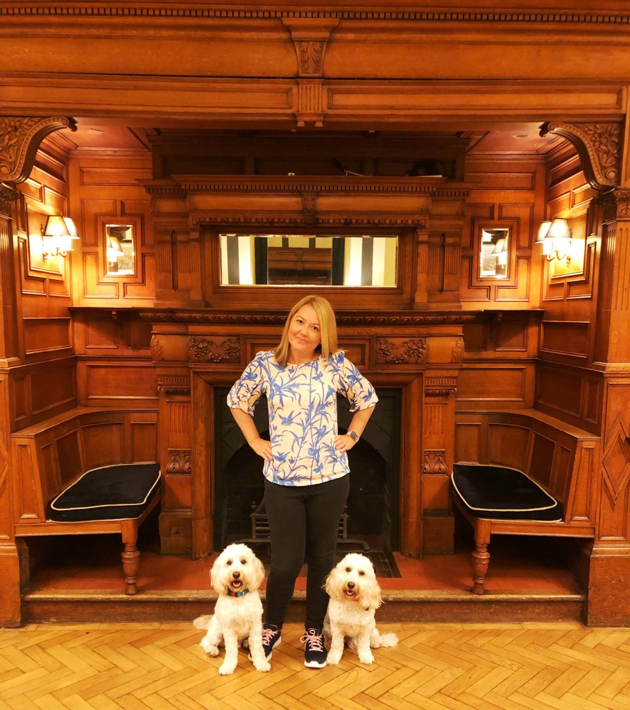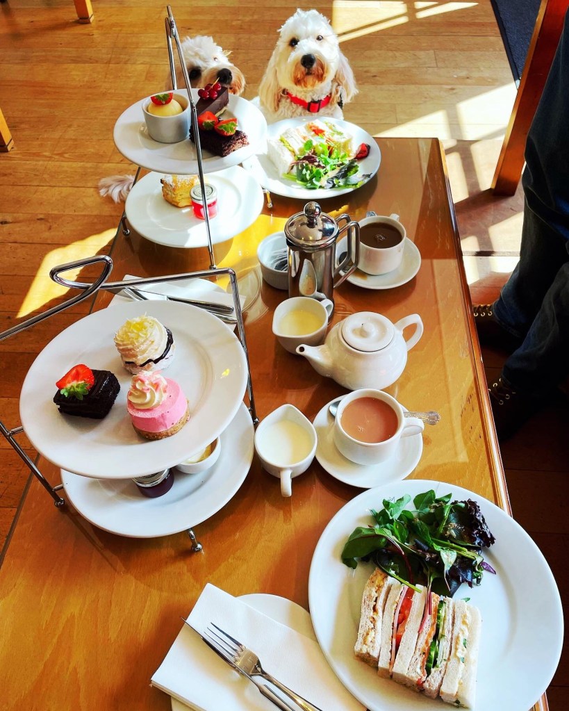 The afternoon tea was beautiful, included warm scones with clotted cream and jam and delicious sandwiches. I even ate the egg ones they were that nice, and I hate egg butties. They accommodated Steve’s food intolerances brilliantly and he definitely didn’t miss out. He even got a few tips on gluten free bread. The dogs felt like they missed out, but they loved exploring. We went for a walk in the large grounds afterwards before heading back so Steve could go for his pre-dinner massage.