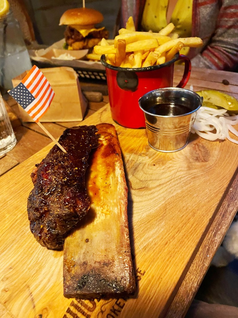 For my main meal I went for ‘The Bird and Beast Burger’. Made up of Southern fried chicken, beef burger, hash brown, lettuce, fresh tomato, American style cheese and tangy creole mayonnaise, I didn’t think I’d be able to eat it all. But I did a great job 🤣 I think there was half a bun and a bit of burger left. The chip portion was enormous too.