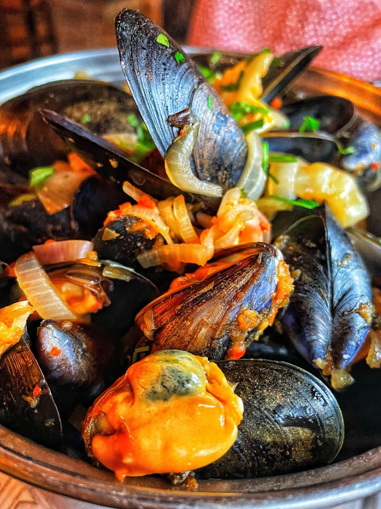 Located on Cuppin Street, Moules A Go-Go is an independent bar, cafe and bistro that specialises in fresh mussels that come from suppliers in The Menai Straits and the West coast of Scotland. We used to dine here frequently when they were located on the historic Chester Rows but had a bad meal here when they moved and never went back. But I’m so glad we did this time!