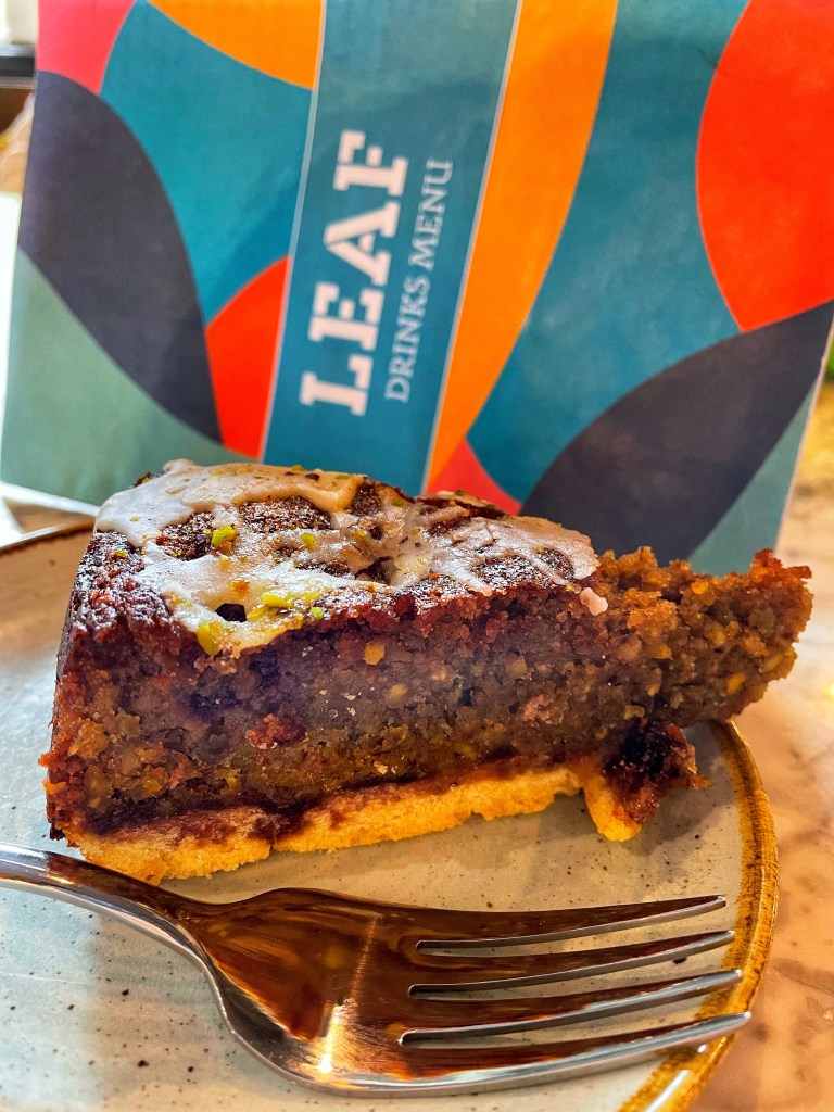 The food was delicious and hearty and went down a treat. For dessert two of us had a slice of Pistachio and Blueberry Bakewell Cake. The texture of this one was a little odd, very like Baklava but with a pastry base. My friend enjoyed it more than me but serves me right for ordering cake when I didn’t need to haha.