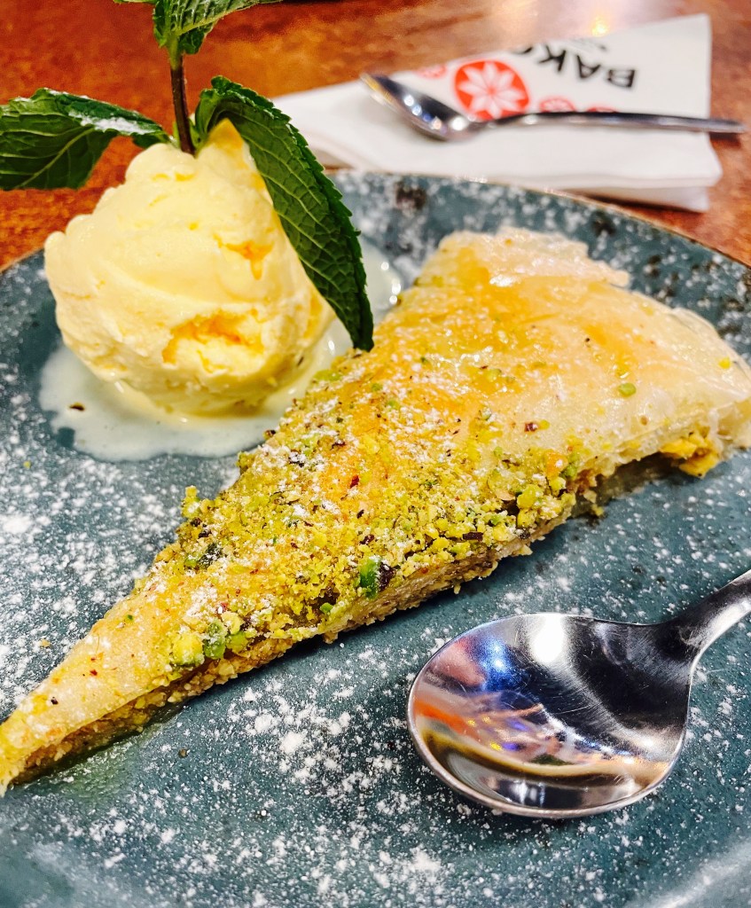 We then treated ourselves to dessert too. I went for Baklava because I know I love it, and my friend went for Konafa that I know as Künefe. Sweet cheese and pastry soaked with syrup and served with ice cream. The desserts were nice but dare I say I’ve had better in Turkey 😳 never the less these were a sweet way to end our meal before we continued into town.