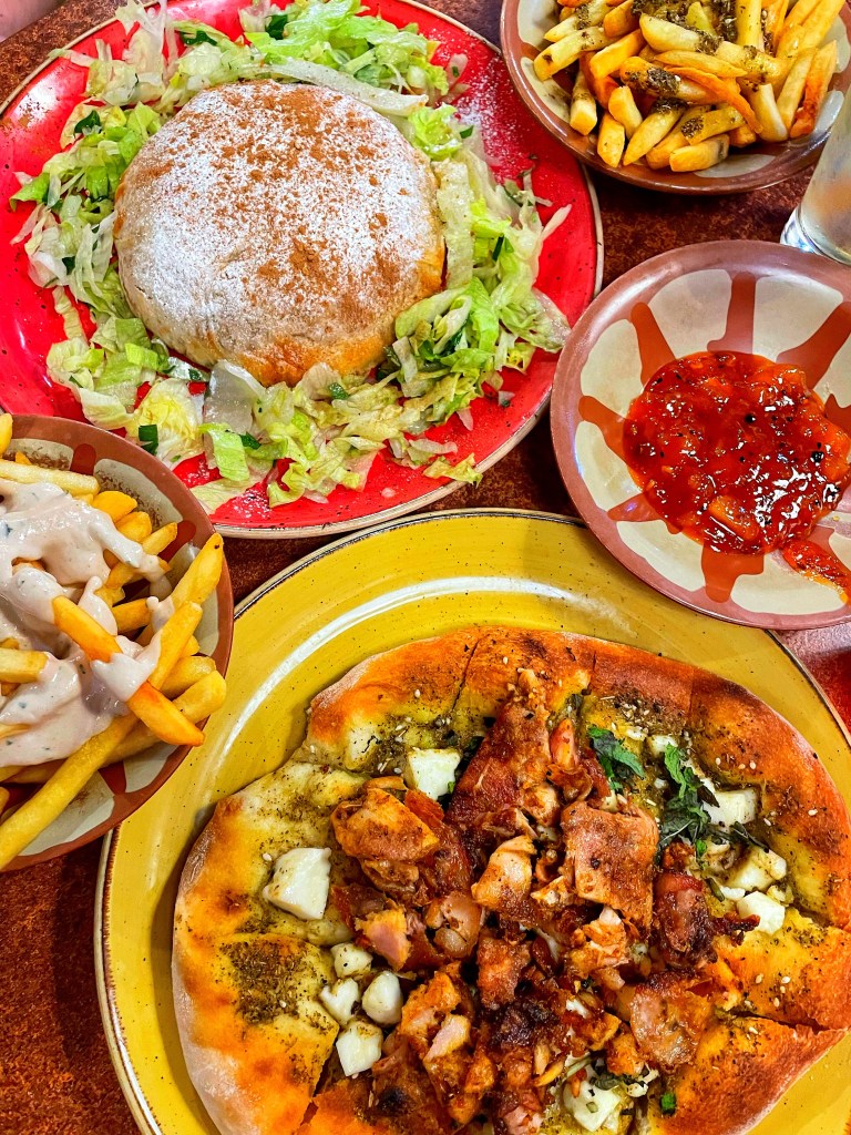 The food was so well flavoured and in such enormous portions! My pizza was delicious but I tried the Pastille and wow cinnamon chicken is so tasty. Tahini on chips might be my favourite way to eat them now too! Yum!