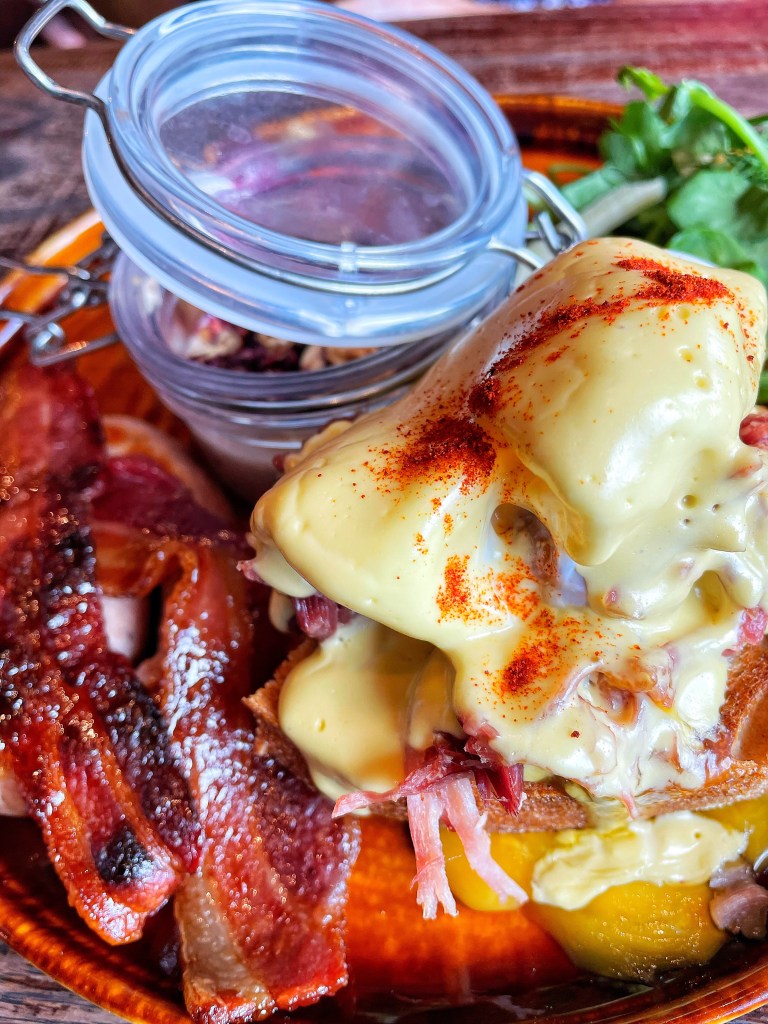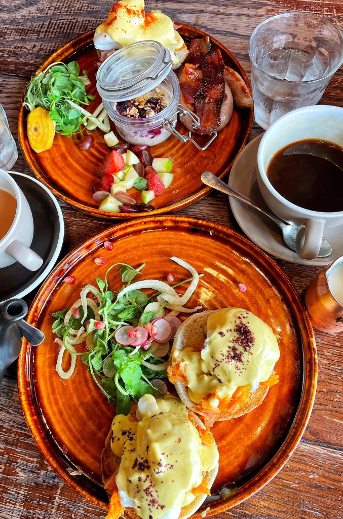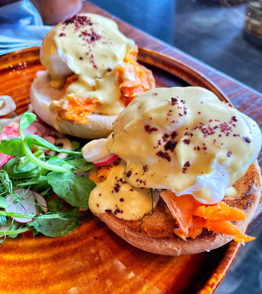 I went for the Smoked Trout Eggs Benedict. A toasted English muffin topped with poached eggs, smoked trout and hollandaise.