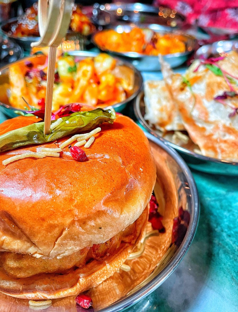 🍔Vada Pav – Spiced potato dumpling placed in a bread bun with green chilli & chutney