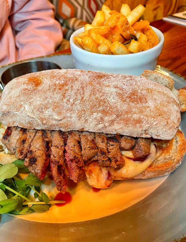 She enjoyed a steak sandwich and a fondue of brownie and blondie bites. Yum!